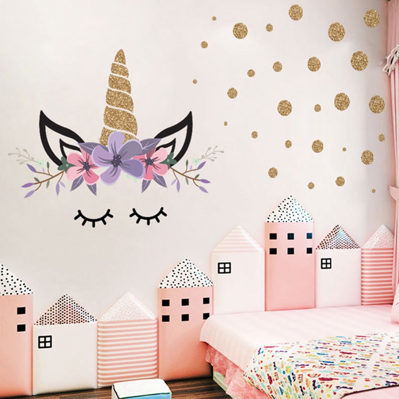 Cute Cartoon Golden Polka Dot Unicorn Stars Wall Stickers Wallpaper Girls Bedroom Kids Room Room Decoration Decals Diy Shopee Philippines