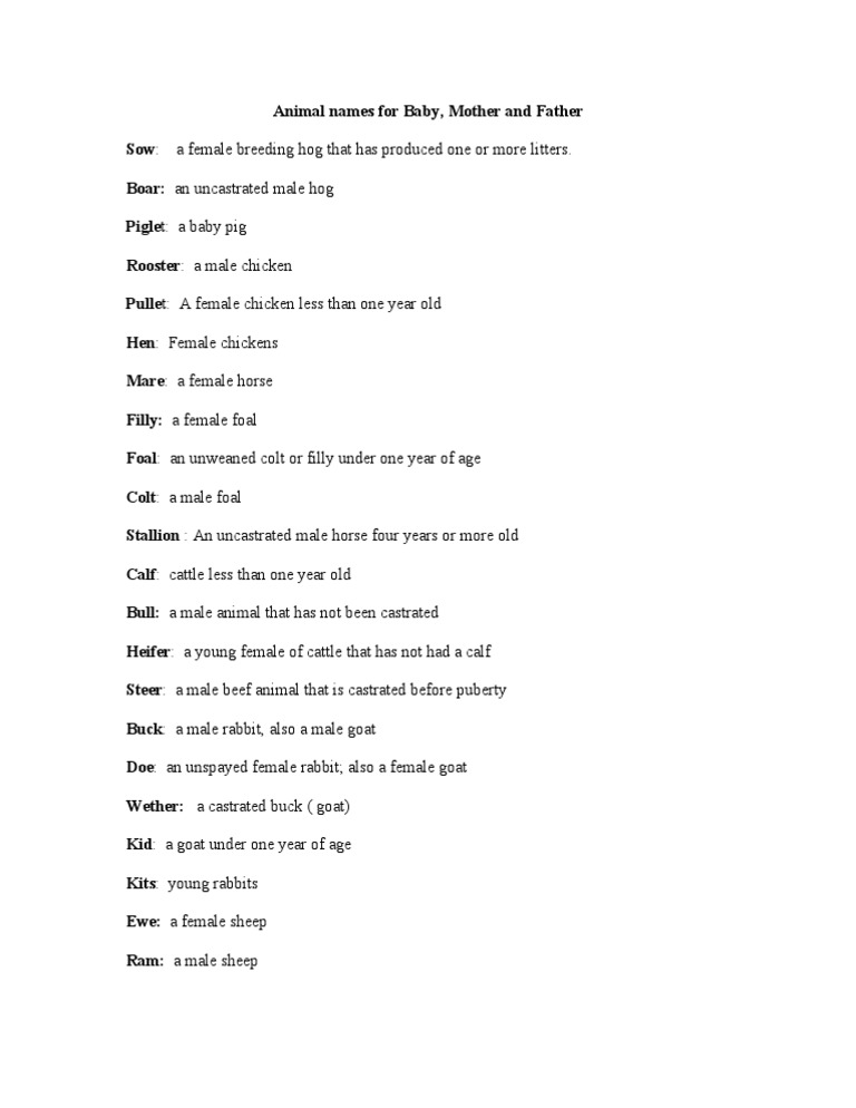 Male Female Baby Animal Names In English With Useful Images 7esl