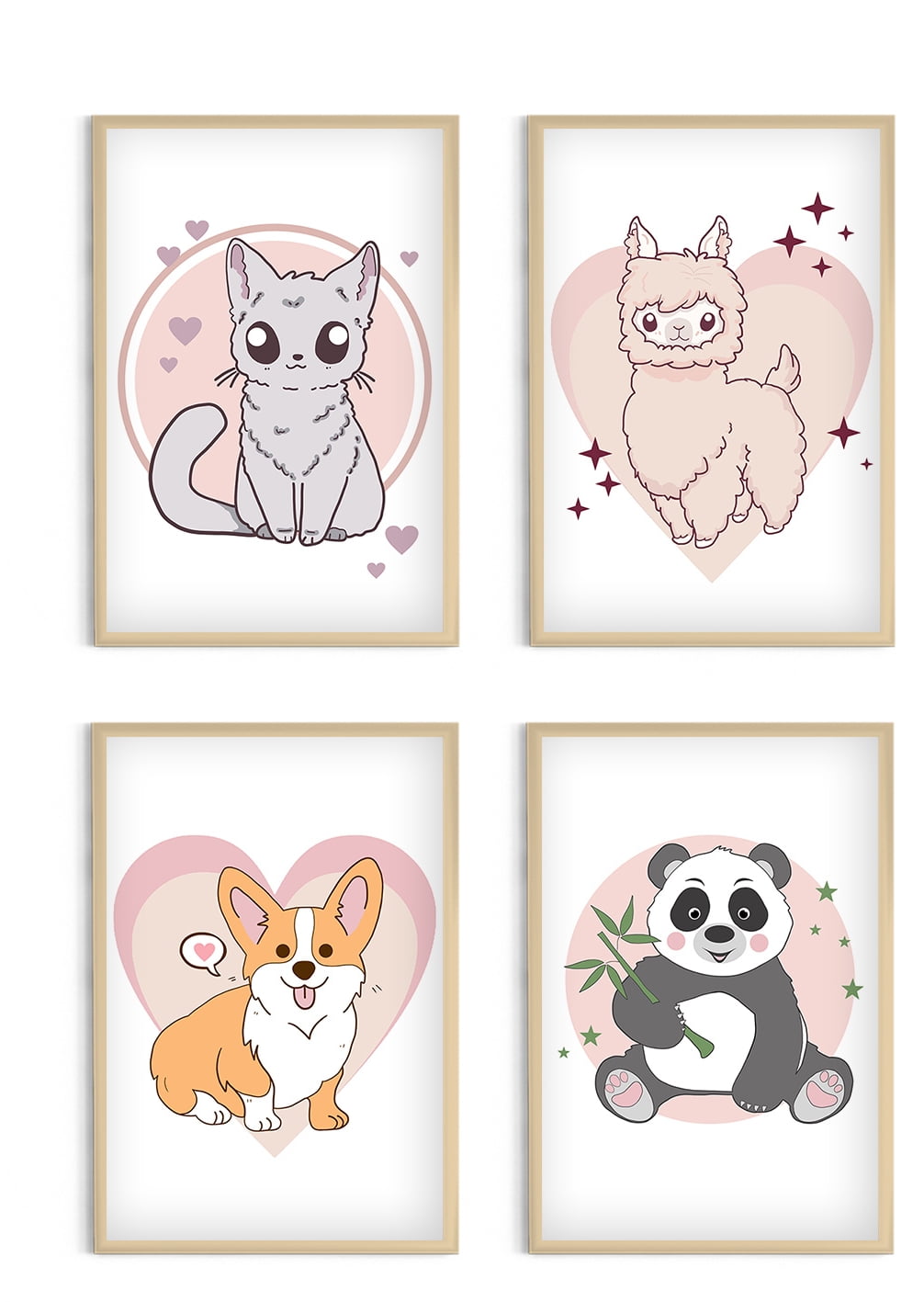 Awkward Styles Kawaii Wall Decor Pretty Kawaii Animals Kids Wall Art Kids Room Decor Boys Girls Room Wall Art Kitty Llama Dog Panda Set Of 4 Poster Walmart Com Walmart Com