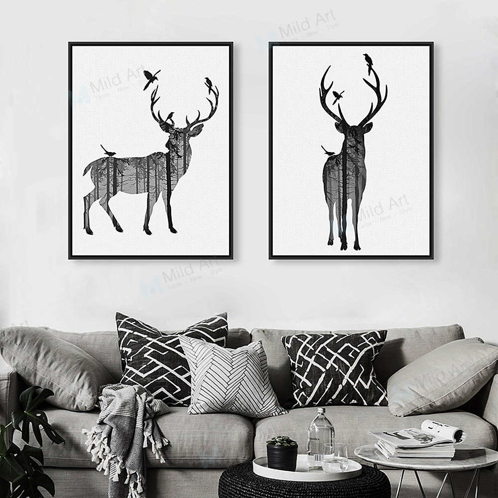 Modern Nordic Black White Animal Silhouette Deer Art Print Poster Wall Elleseal
