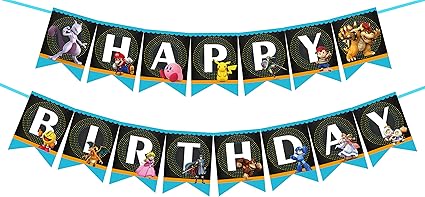 Amazon Com Super Smash Brothers Happy Birthday Banner Game Birthday Banner For Gamer S Super Mario Theme Party Supplies Toys Games